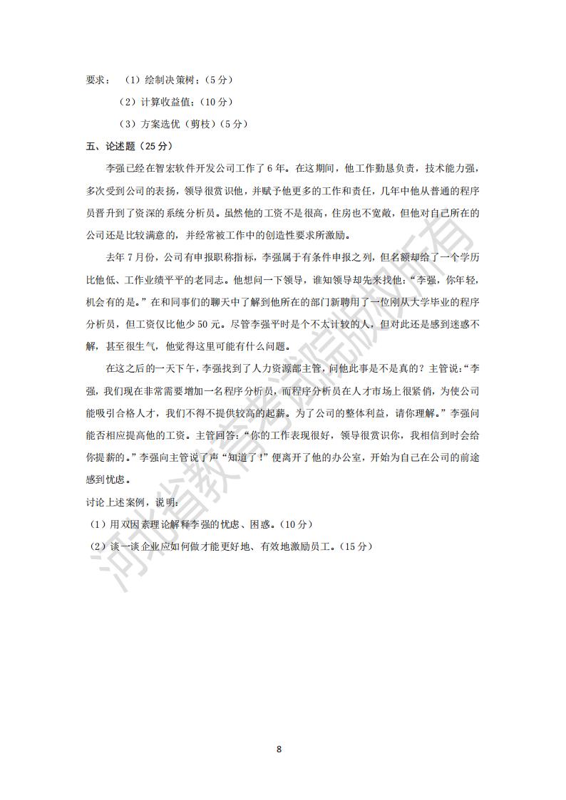> 河北省普通高等学校专升本考试管理学原理模拟试卷及参考答案