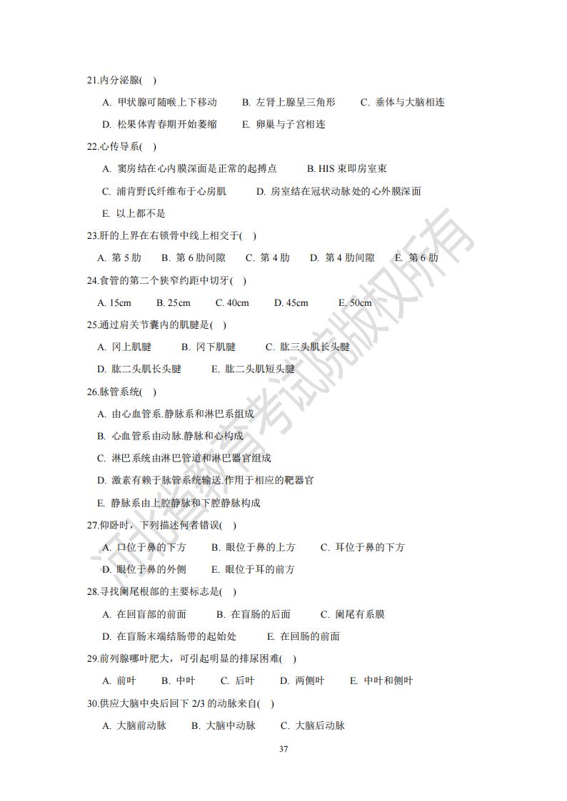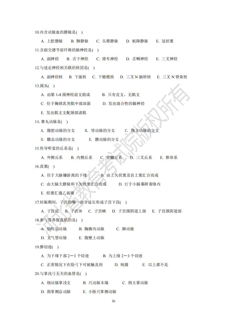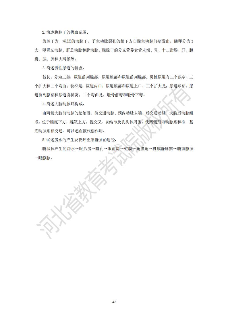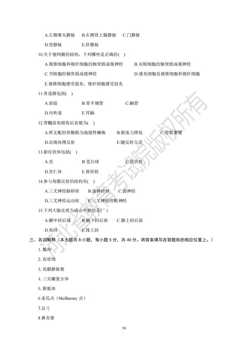 河北省专升本考试 人体解剖学模拟试卷及答案 考试采用闭卷、笔试形式,全卷满分 150 分,考试时间为 75 分钟。 考试包括单项选择题、多项选择题、名词解释和简答题。单项选择题分值合计为 30分,多项选择题分值合计 30 分,名词解释题目分值合计为 40 分,简答题分值合计为 50 分。