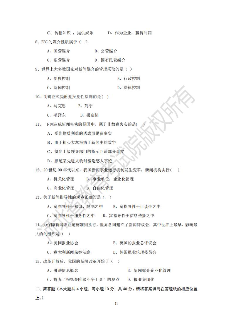 河北专接本 新闻史论模拟试卷答案