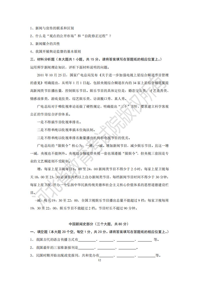 > 河北省专升本考试 新闻史论模拟试卷及参考答案