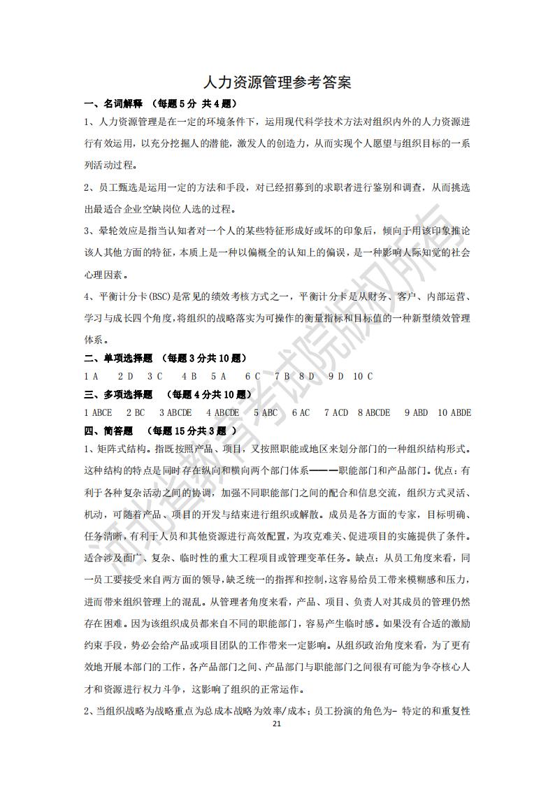 > 河北专升本考试人力资源管理模拟试卷及参考答案