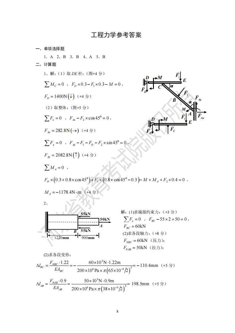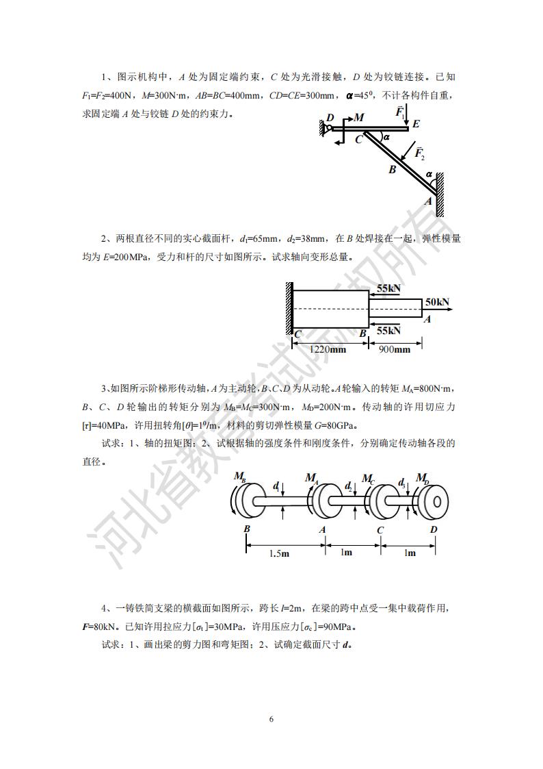 > 河北省专升本考试工程力学模拟真题试卷及参考答案