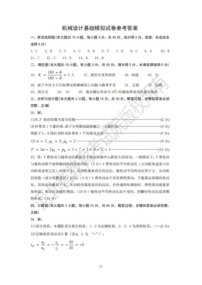 > 河北专升本考试机械设计基础模拟真题及参考答案