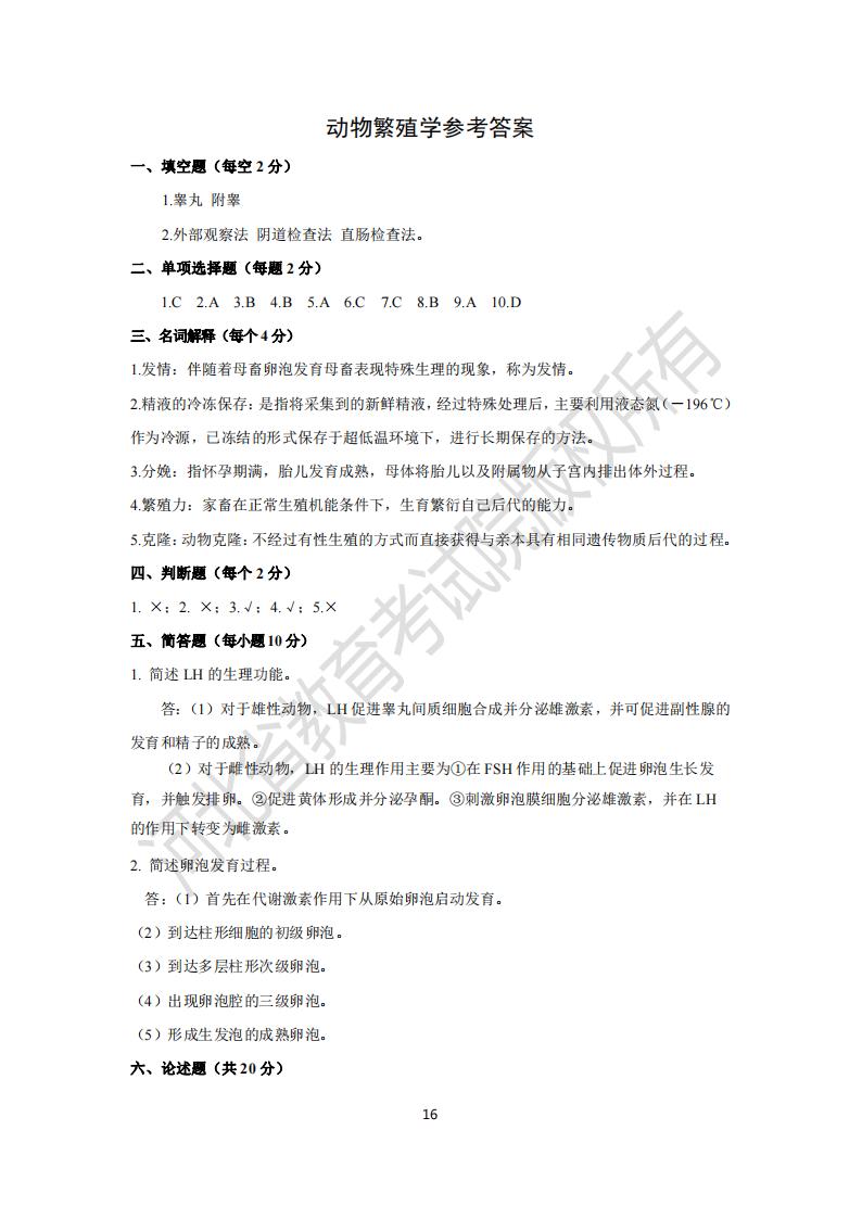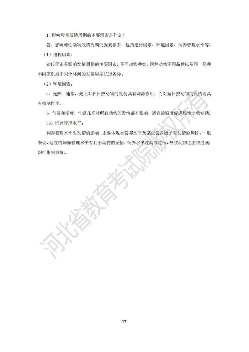 河北专升本动物繁殖学模拟真题试卷参考答案