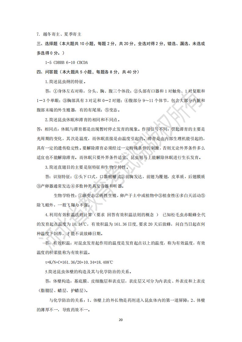 河北省普通高等学校专升本考试昆虫学模拟试卷及参考答案
