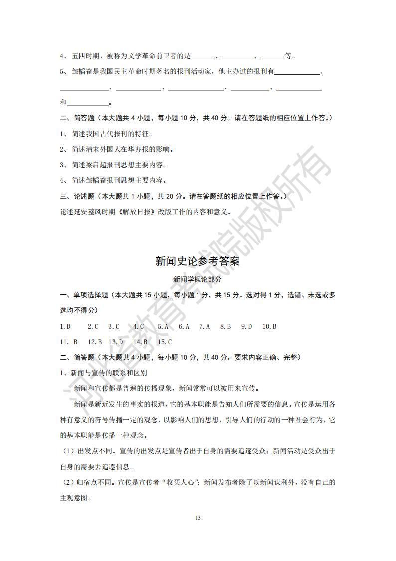 > 河北省普通高等学校专升本考试新闻史论模拟试卷及参考答案