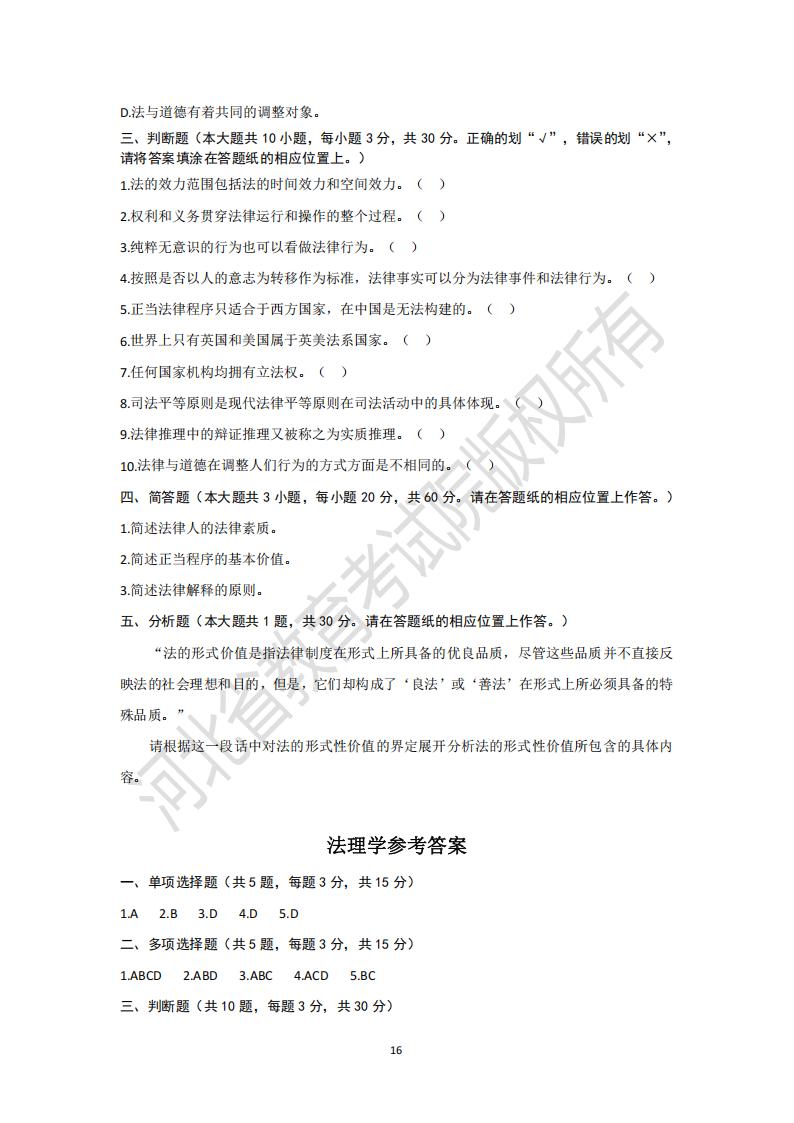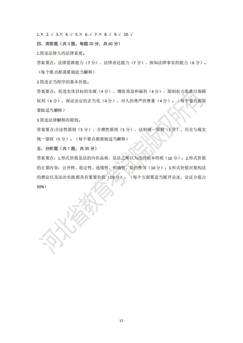 > 河北省普通高等学校专升本考试法理学模拟试卷及参考答案