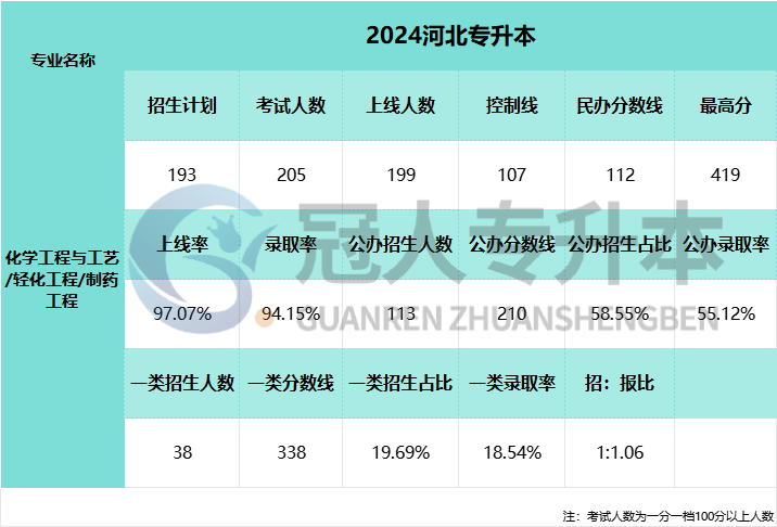 2025年河北省专升本考试将与2025年4月19日进行,河北专升本考试制药工程专业公办招生占比还没有公布,参加2025年河北专升本考试的考生可以参考下表中2024年制药工程专业公办