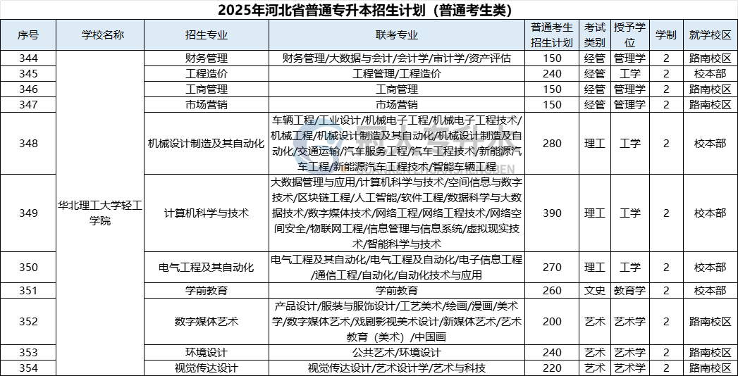2025年河北省普通专升本华北理工大学专升本招生计划已公布,参加2025年河北专升本考试的考生请查看下表2025年华北理工大学专升本招生计划信息。