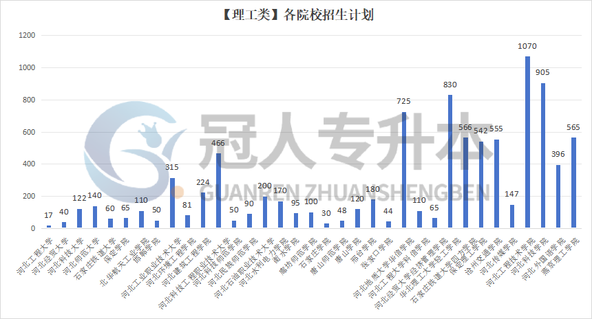 招生人数最多的院校是河北工程技术学院,共招生理工类学生1070人;招生人数最少的院校是河北工程大学,仅招生17人。