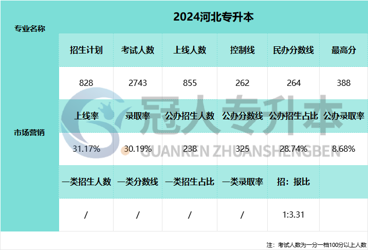 摘要:2025年河北省专升本考试将与2025年4月19日进行,河北专升本考试市场营销专业一类院校招生人数还没有公布,参加2025年河北专升本考试的考生可以参考下表中2024年市场营销专业一类院校招生人数。