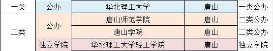 河北唐山专升本招生本科的院校有1所一类公办华北理工大学,2所二类公办唐山师范学院和唐山学院,和1所独立学院是华北理工大学轻工学院。