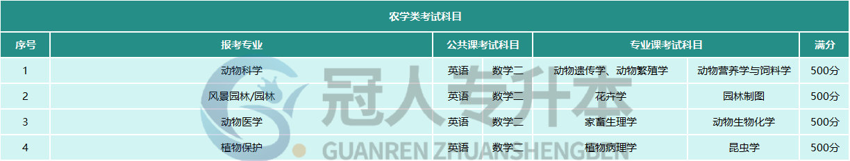 农学类专业考试科目分为两部分,公共课和专业课
