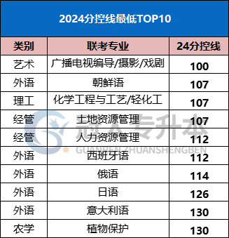 2024年河北专升本分控线ZUI低TOP10的专业: