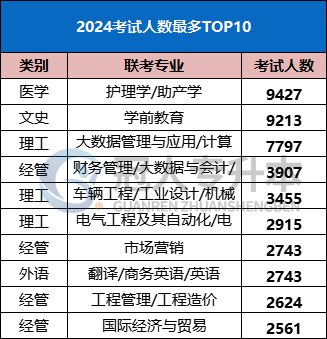 2024年河北专升本考试人数ZUI多TOP10的专业: