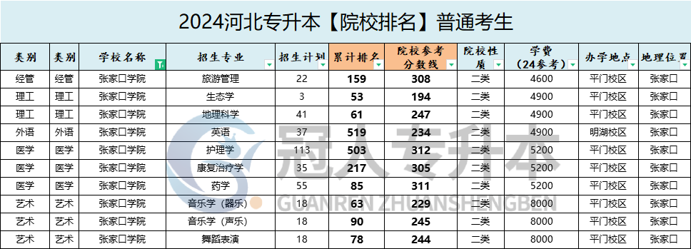 2025年张家口学院专升本院校排名还没有公布,报考25年张家口学院专升本考生可以参考24年张家口学院院校排名