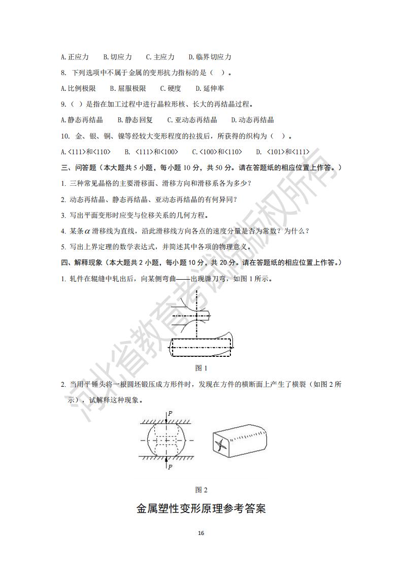 > 河北省专升本考试金属塑性变形原理模拟真题及参考答案